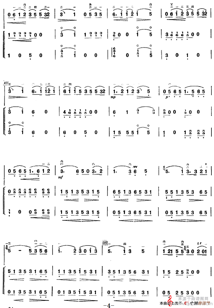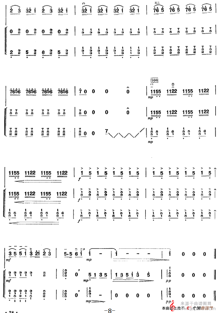 提示:在曲谱图片上单击右键,选择“图片另存为...”即可将曲谱保存到您的电脑中,打印时候可将图片插入到WORD中,调整合适大小打印即可。