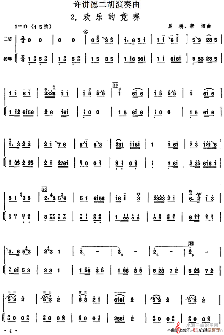 曲谱图网为您提供许讲德二胡演奏曲:2.欢乐的竞赛简谱(许讲德二胡演奏曲:2.欢乐的竞赛二胡演奏曲谱)找谱子,就上曲谱图网。