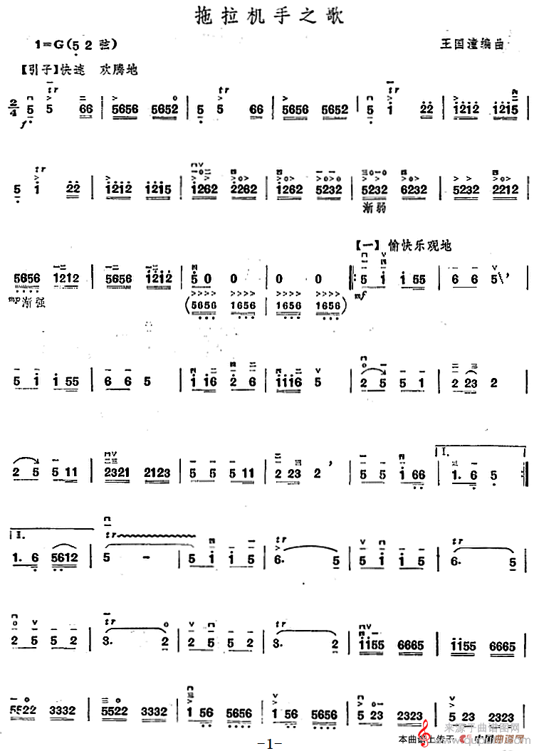 曲谱图网为您提供拖拉机手之歌歌曲简谱(拖拉机手之歌胡琴乐曲曲谱)找谱子,就上曲谱图网。