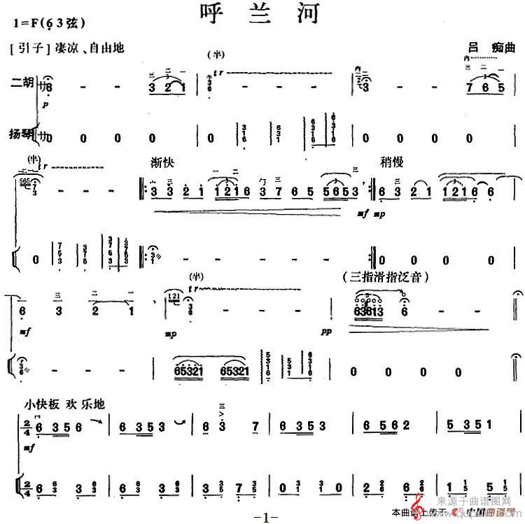 曲谱图网为您提供呼兰河曲谱(呼兰河二胡独奏简谱)找谱子,就上曲谱图网。