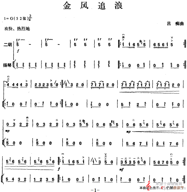 金风追浪曲谱(金风追浪胡琴乐曲曲谱)