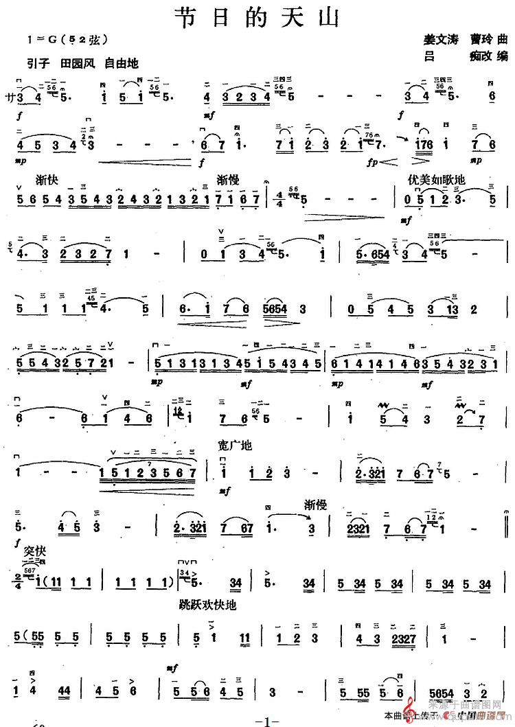 曲谱图网为您提供节日的天山简谱(节日的天山扬琴独奏简谱)找谱子,就上曲谱图网。