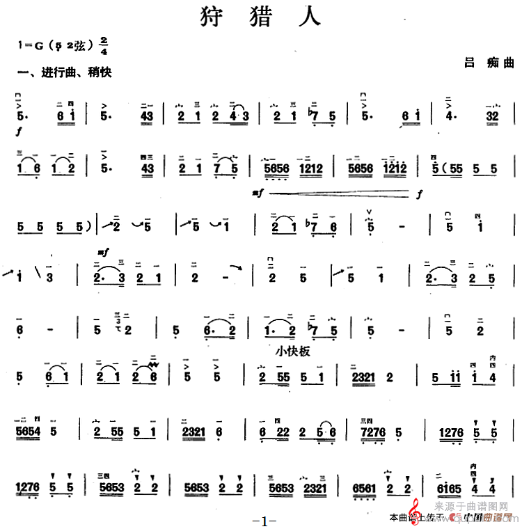 曲谱图网为您提供狩猎人民歌简谱(狩猎人胡琴乐曲演奏简谱)找谱子,就上曲谱图网。