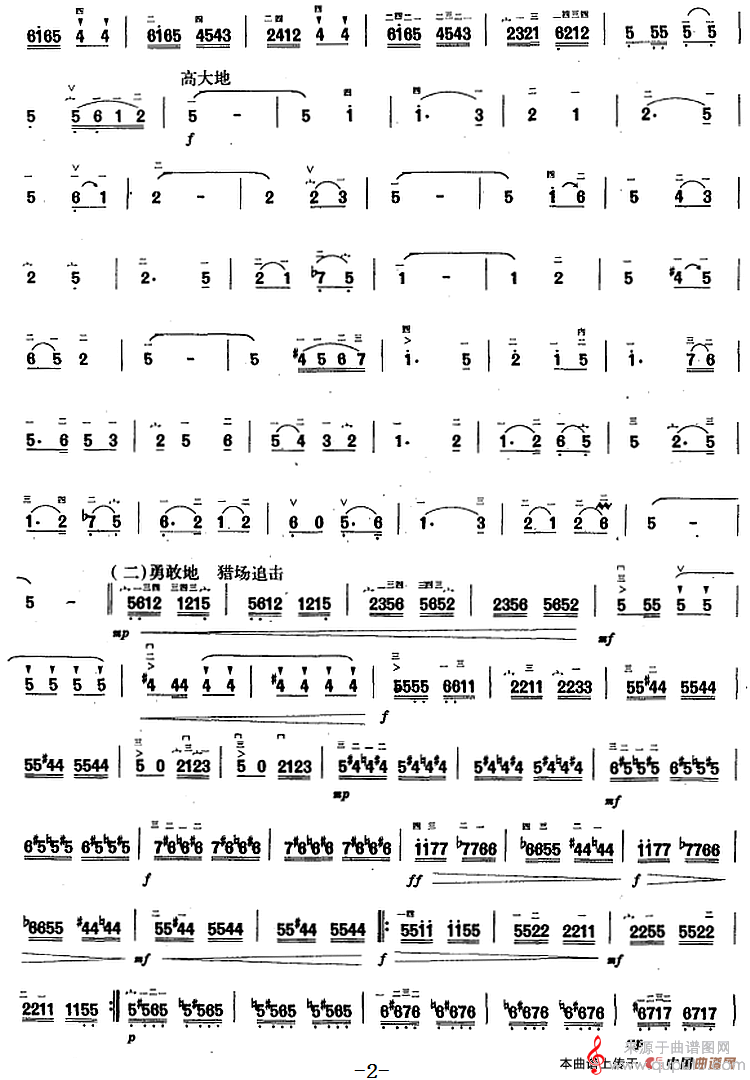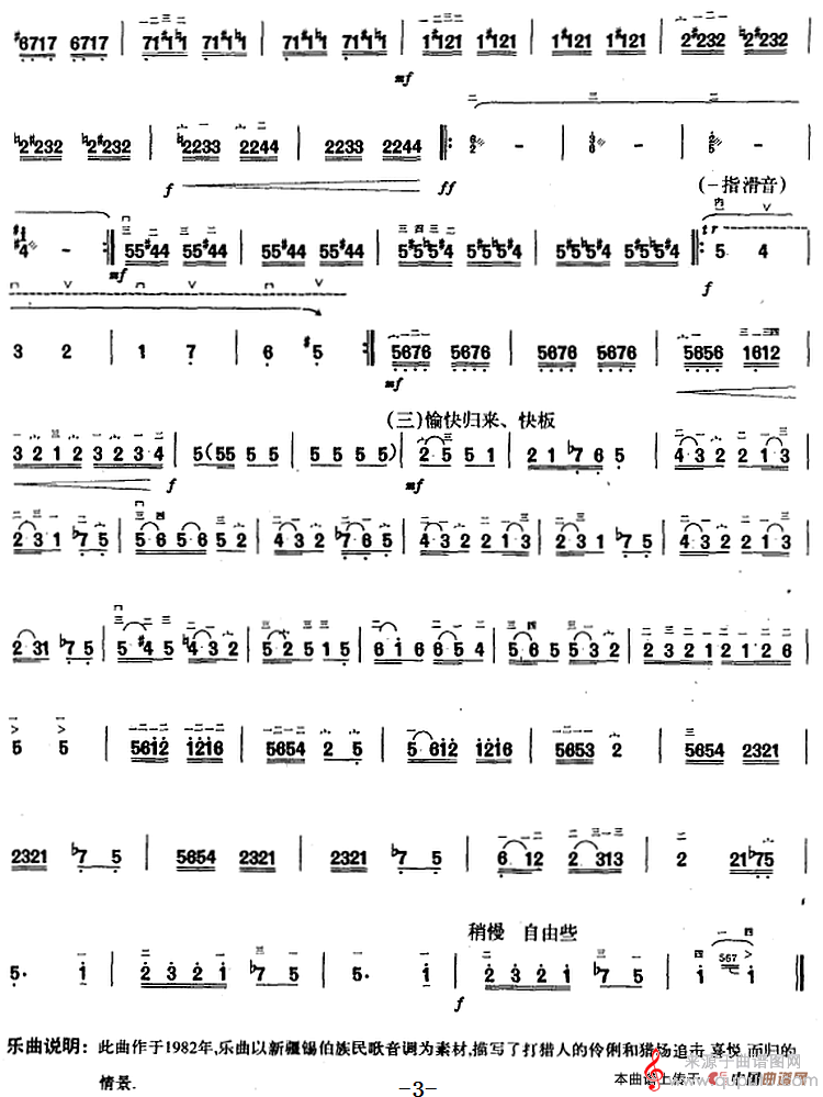 狩猎人民歌简谱(狩猎人胡琴乐曲演奏简谱)