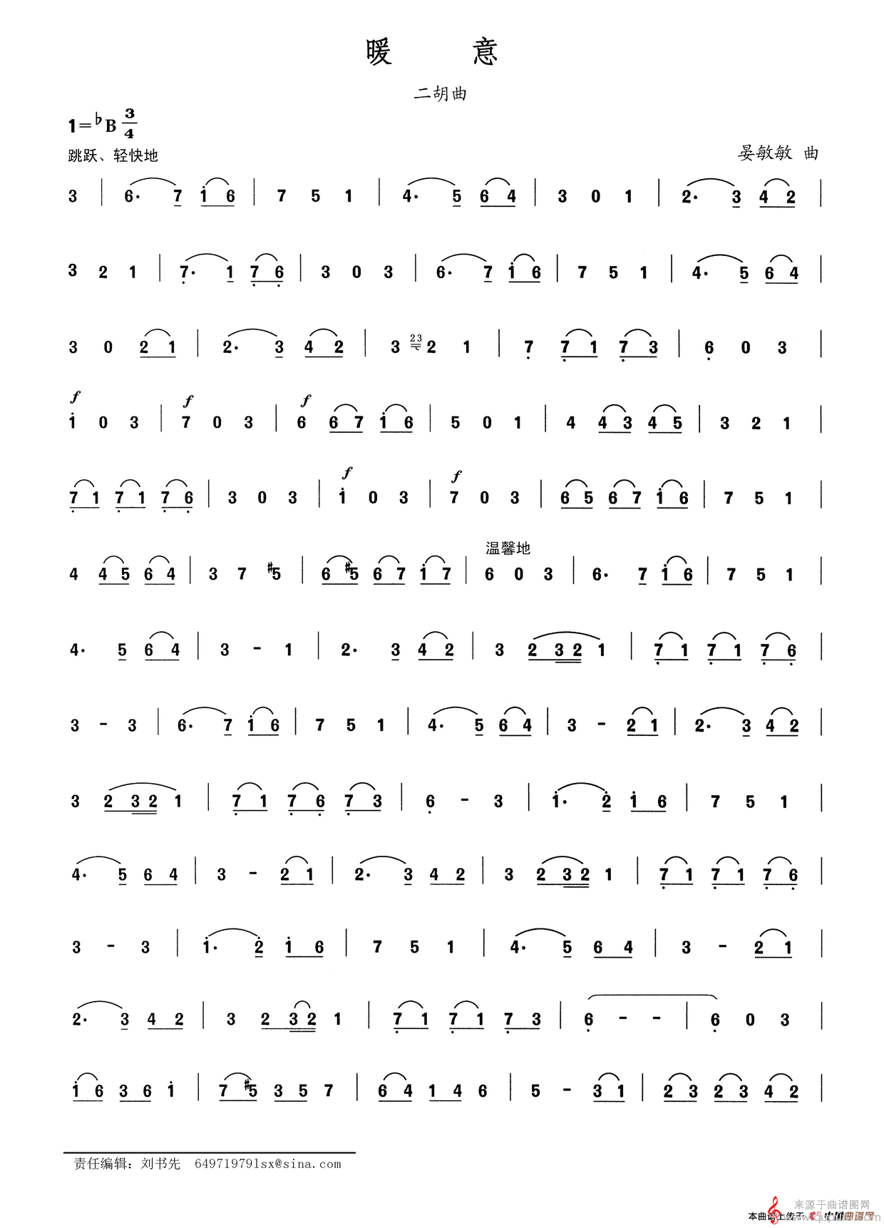 曲谱图网为您提供暖意简谱(暖意二胡独奏简谱)找谱子,就上曲谱图网。