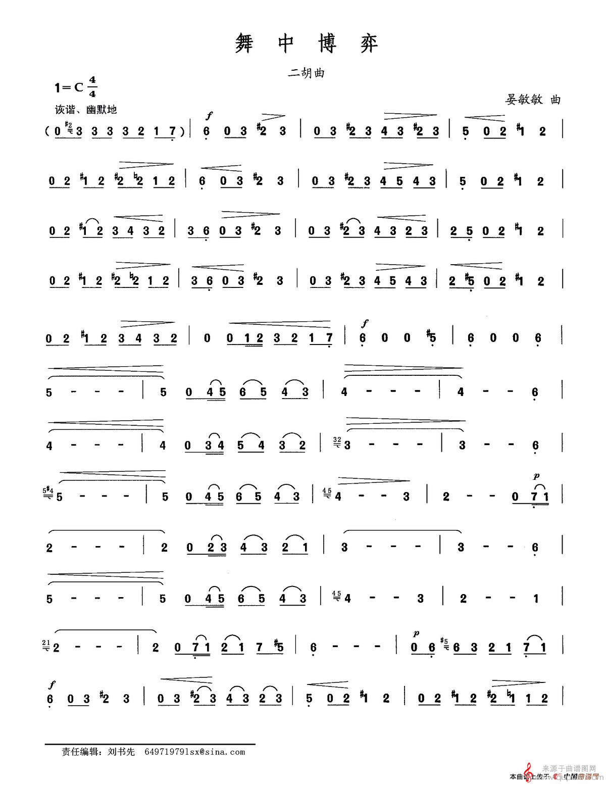 曲谱图网为您提供舞中博弈歌曲简谱(舞中博弈二胡演奏简谱)找谱子,就上曲谱图网。