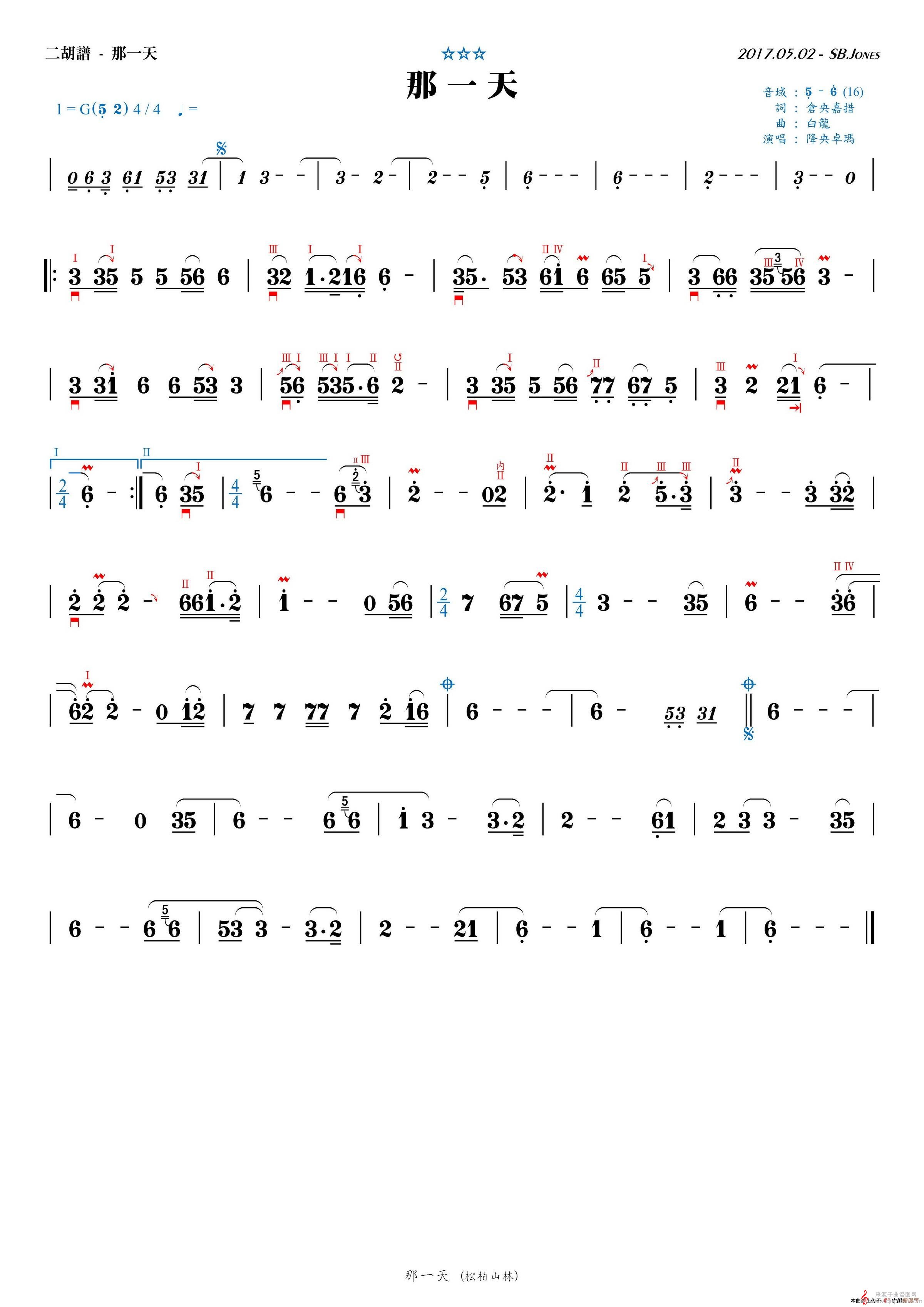 那一天简谱(那一天二胡演奏G调曲谱)