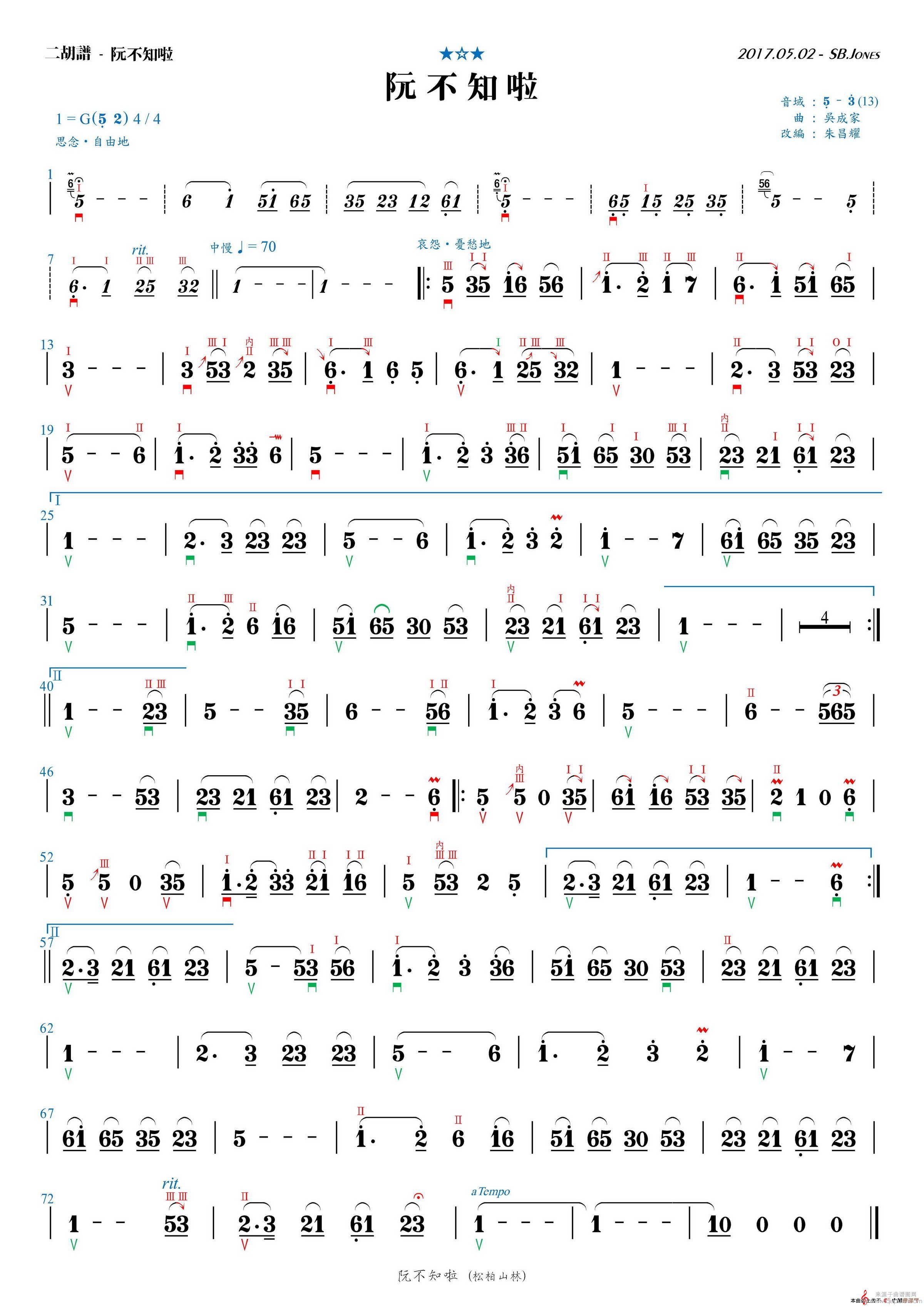 曲谱图网为您提供阮不知啦简谱(阮不知啦二胡演奏G调简谱)找谱子,就上曲谱图网。