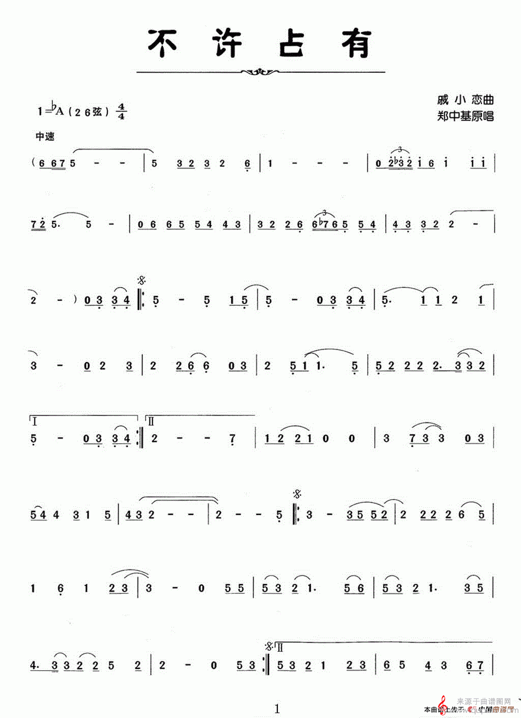 曲谱图网为您提供不许占有曲谱(不许占有胡琴乐曲曲谱)找谱子,就上曲谱图网。