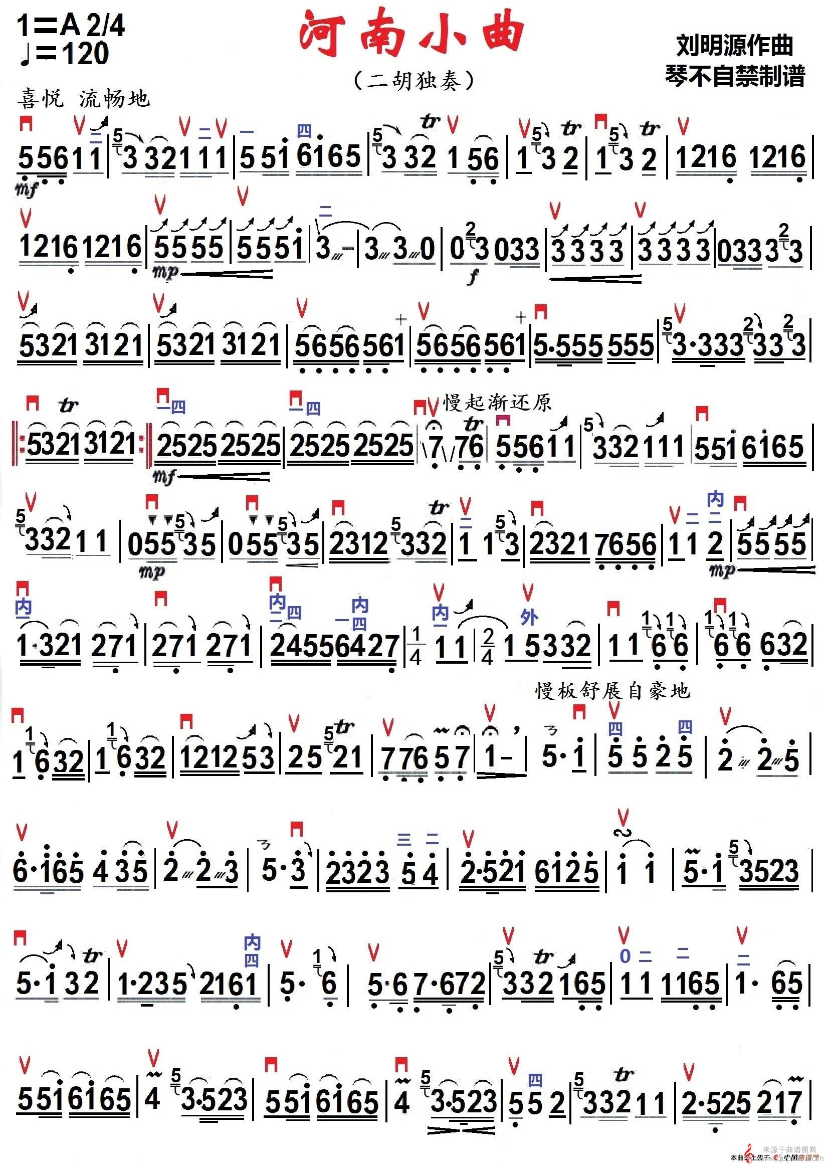 河南小曲(琴不自禁制谱版)曲谱(河南小曲二胡独奏曲曲曲谱)