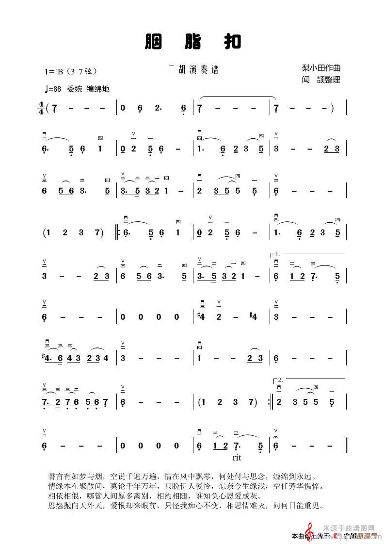 曲谱图网为您提供胭脂扣(琴不自禁制谱版)曲谱(胭脂扣二胡演奏谱)找谱子,就上曲谱图网。