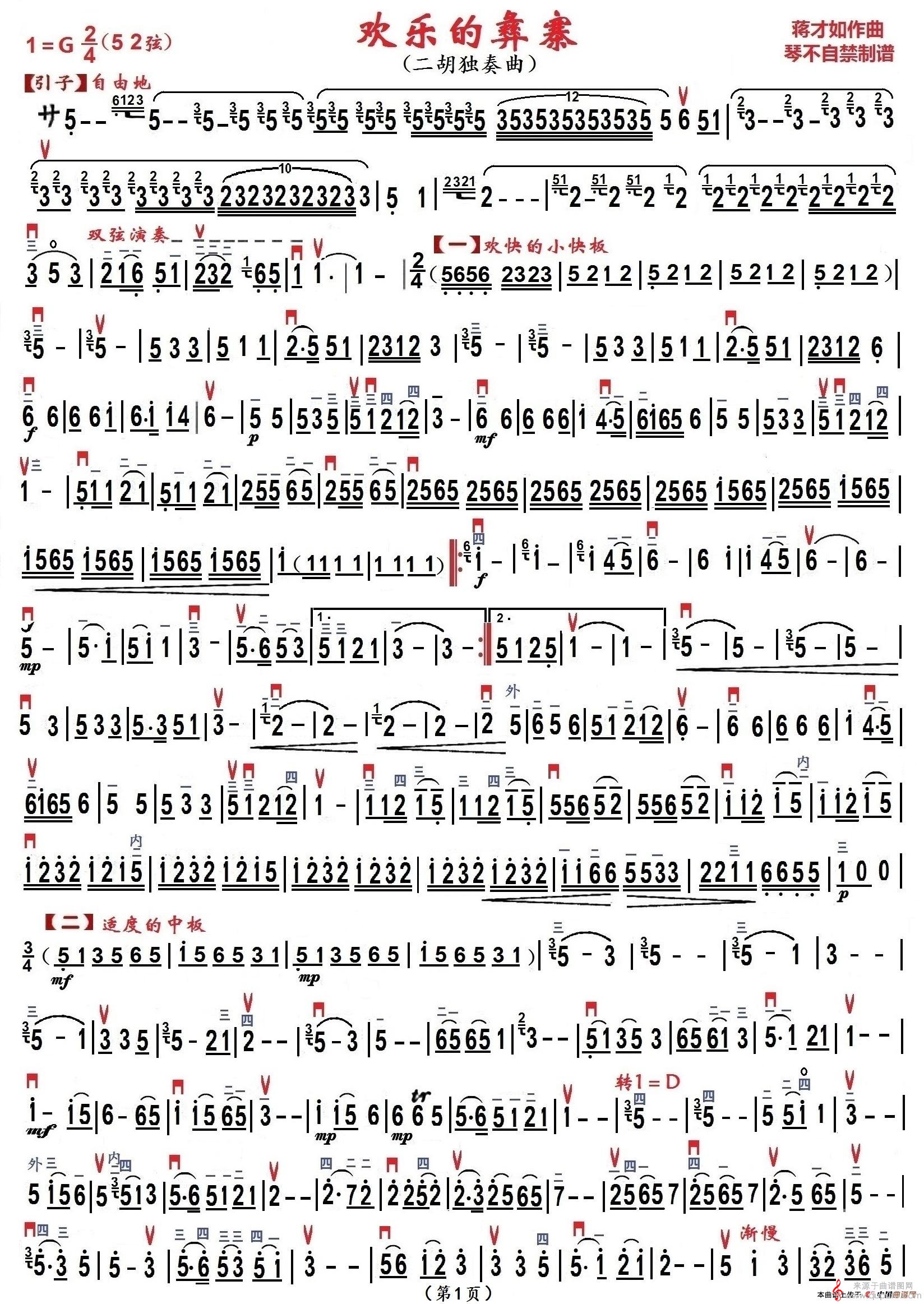 欢乐的彝寨(琴不自禁制谱版)简谱(欢乐的彝寨二胡独奏曲曲谱)