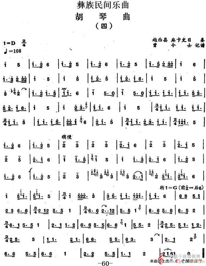 彝族民间乐曲:胡琴曲(四)简谱(彝族民间乐曲:胡琴曲(四))