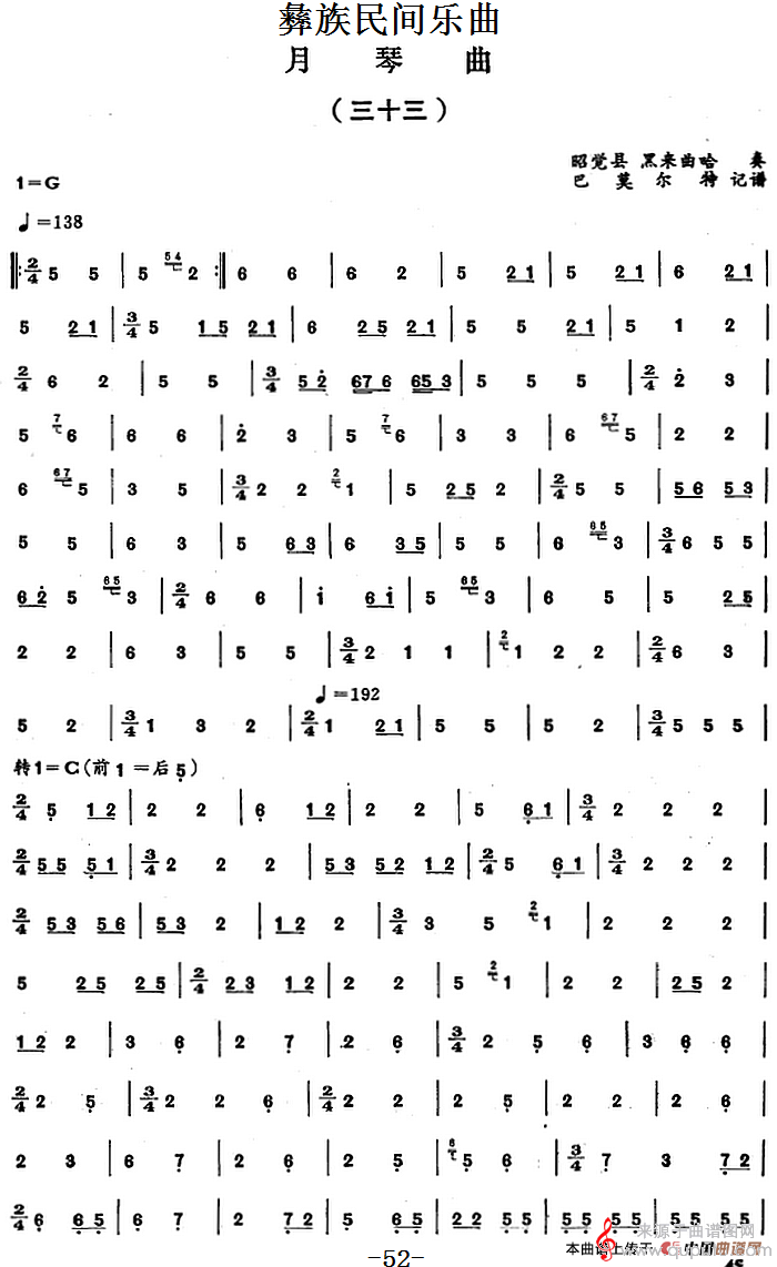 彝族民间乐曲:月琴曲(三十三)简谱(彝族民间乐曲:月琴曲(三十三)胡琴演奏简谱)