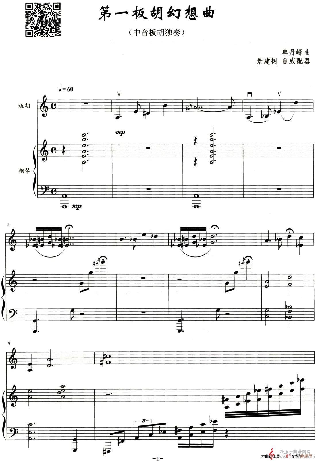 第一板胡幻想曲曲谱(第一板胡幻想曲中音板胡独奏+钢琴伴奏简谱)