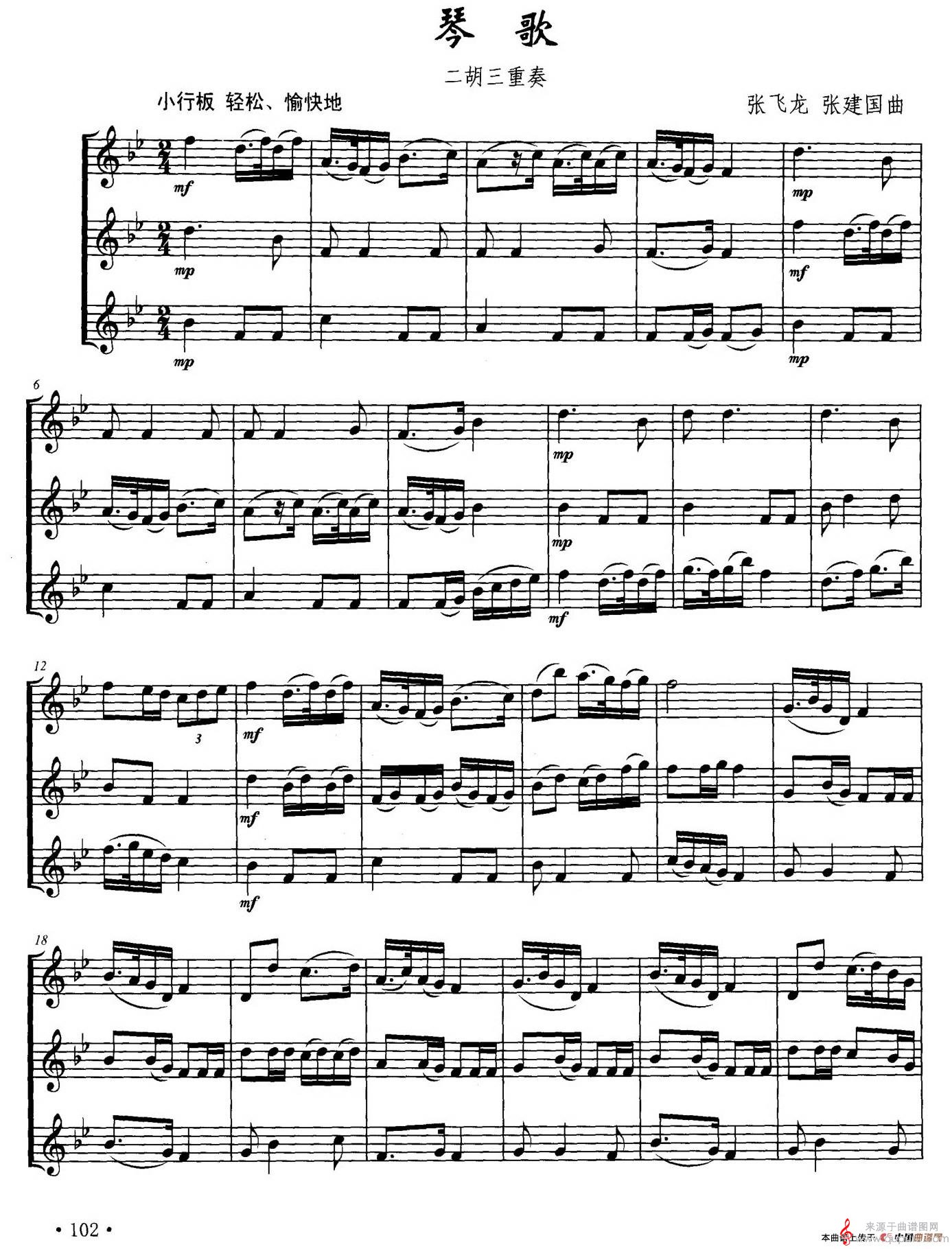 琴歌歌曲简谱(琴歌二胡三重奏曲谱)