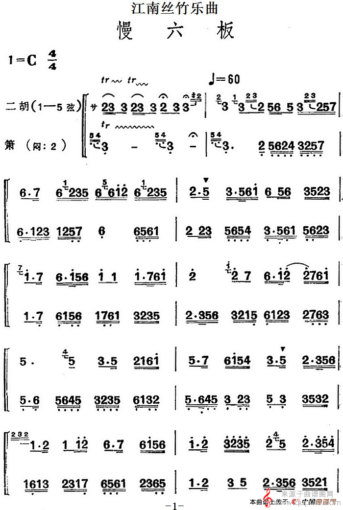 曲谱图网为您提供江南丝竹乐曲:慢六板(江南丝竹乐曲:慢六板二胡+箫合奏简谱)找谱子,就上曲谱图网。