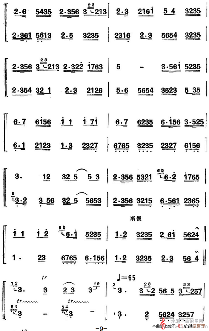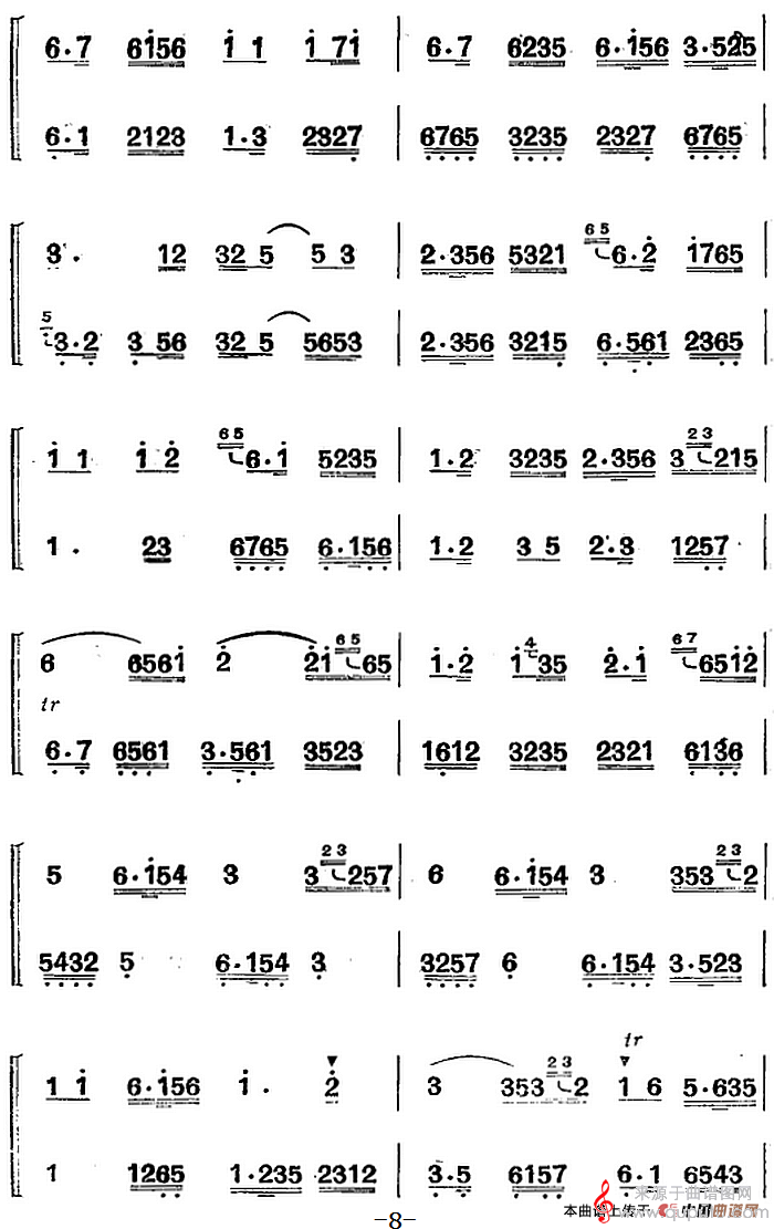 当前位置:曲谱图网器乐曲谱胡琴江南丝竹乐曲:慢六板(江南丝竹乐曲:慢六板二胡+箫合奏简谱)