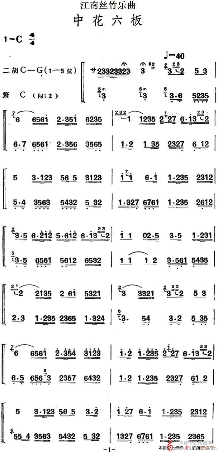 曲谱图网为您提供江南丝竹乐曲:中花六板(江南丝竹乐曲:中花六板二胡+箫演奏简谱)找谱子,就上曲谱图网。