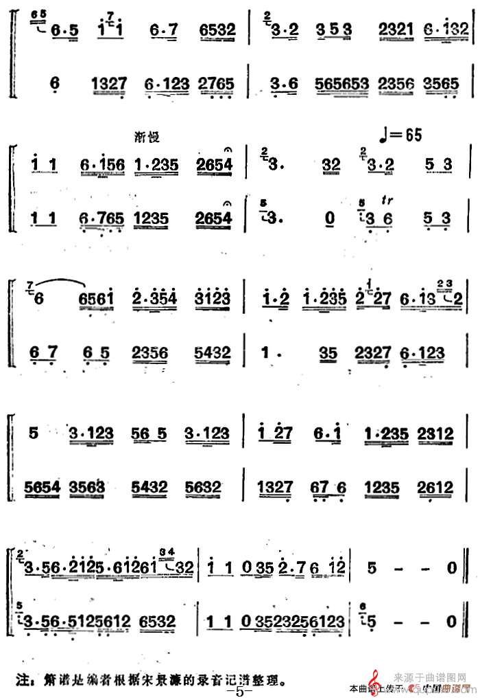 江南丝竹乐曲:中花六板(江南丝竹乐曲:中花六板二胡+箫演奏简谱)