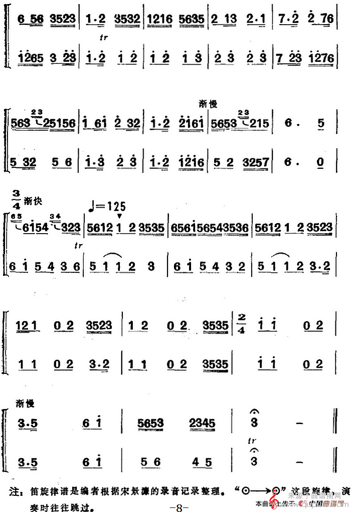 江南丝竹乐曲:中花三六简谱(江南丝竹乐曲:中花三六二胡+笛演奏简谱)