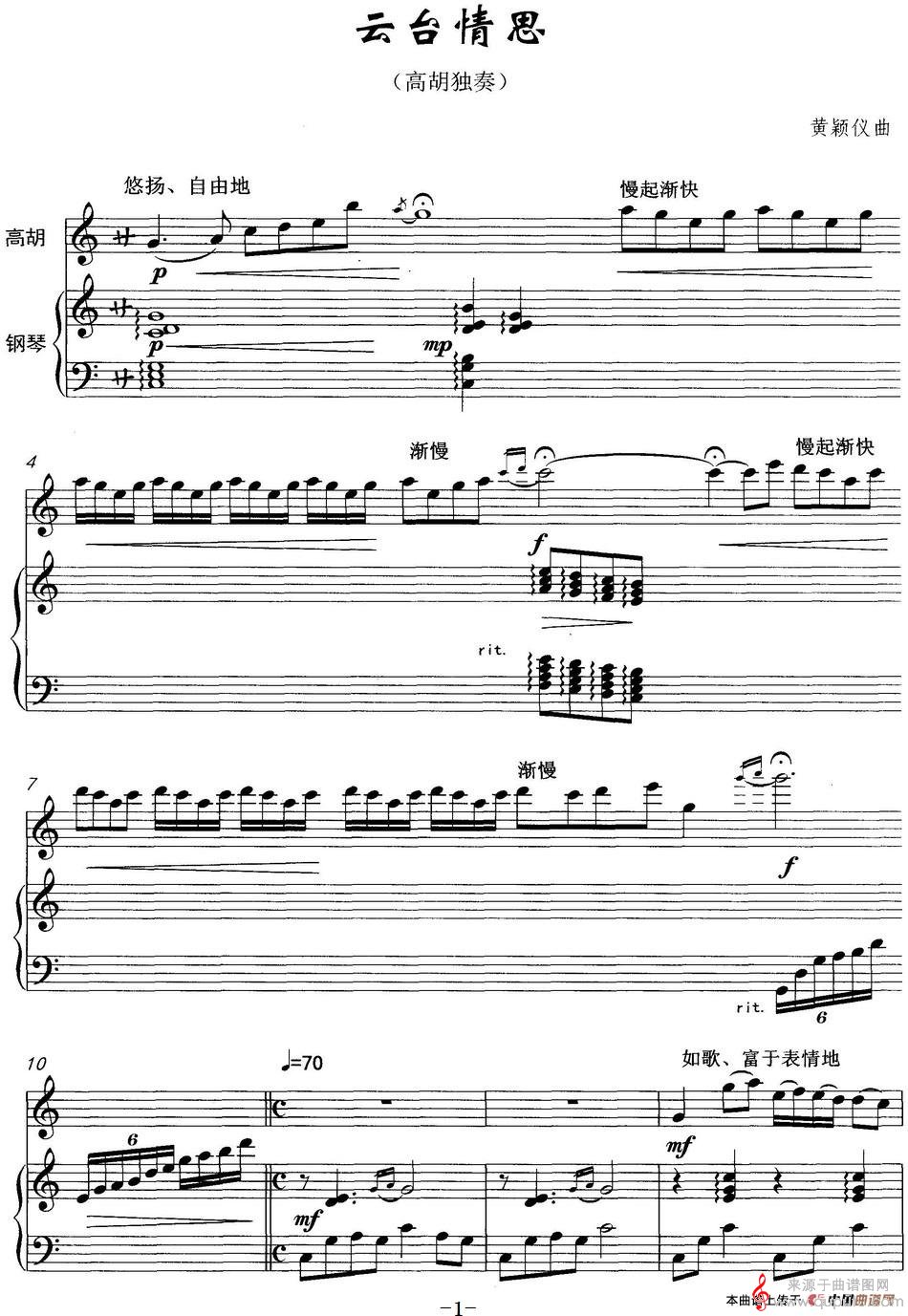 曲谱图网为您提供云台情思简谱(云台情思高胡独奏+钢琴伴奏)找谱子,就上曲谱图网。