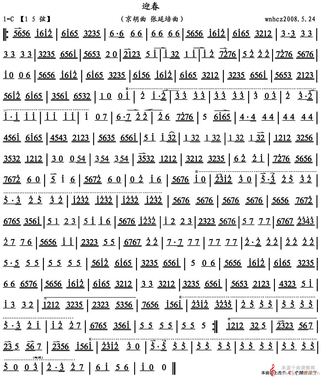 迎春简谱(迎春京胡演奏曲谱)