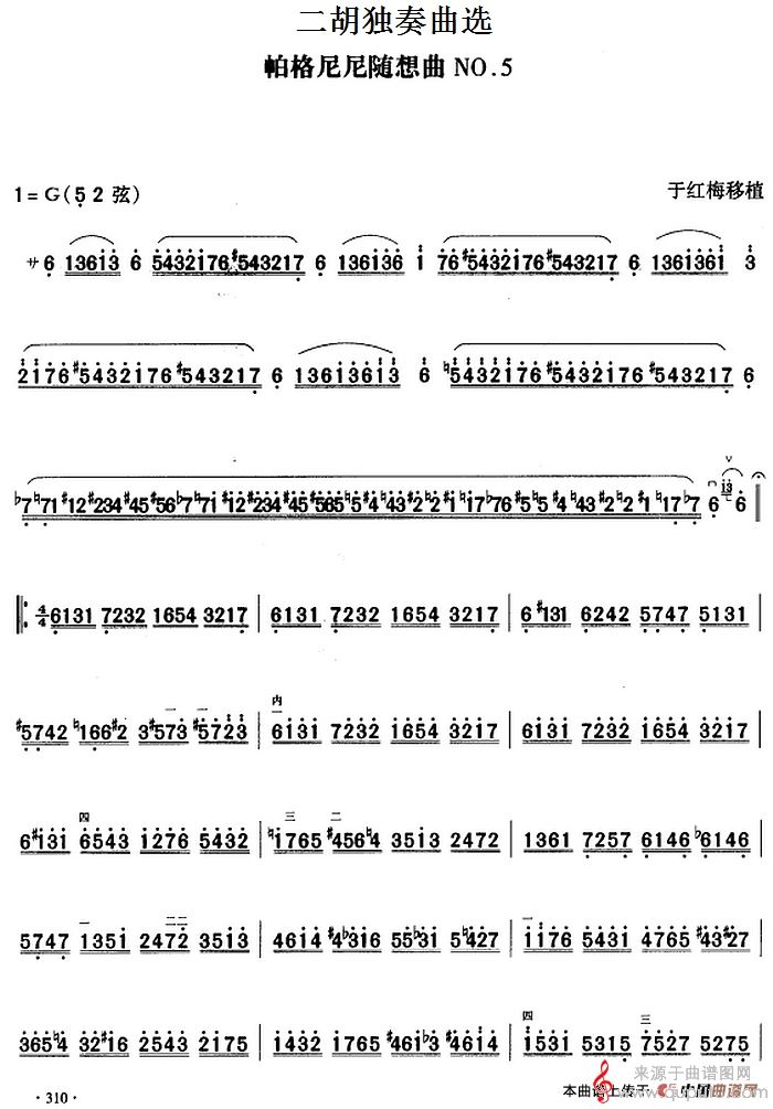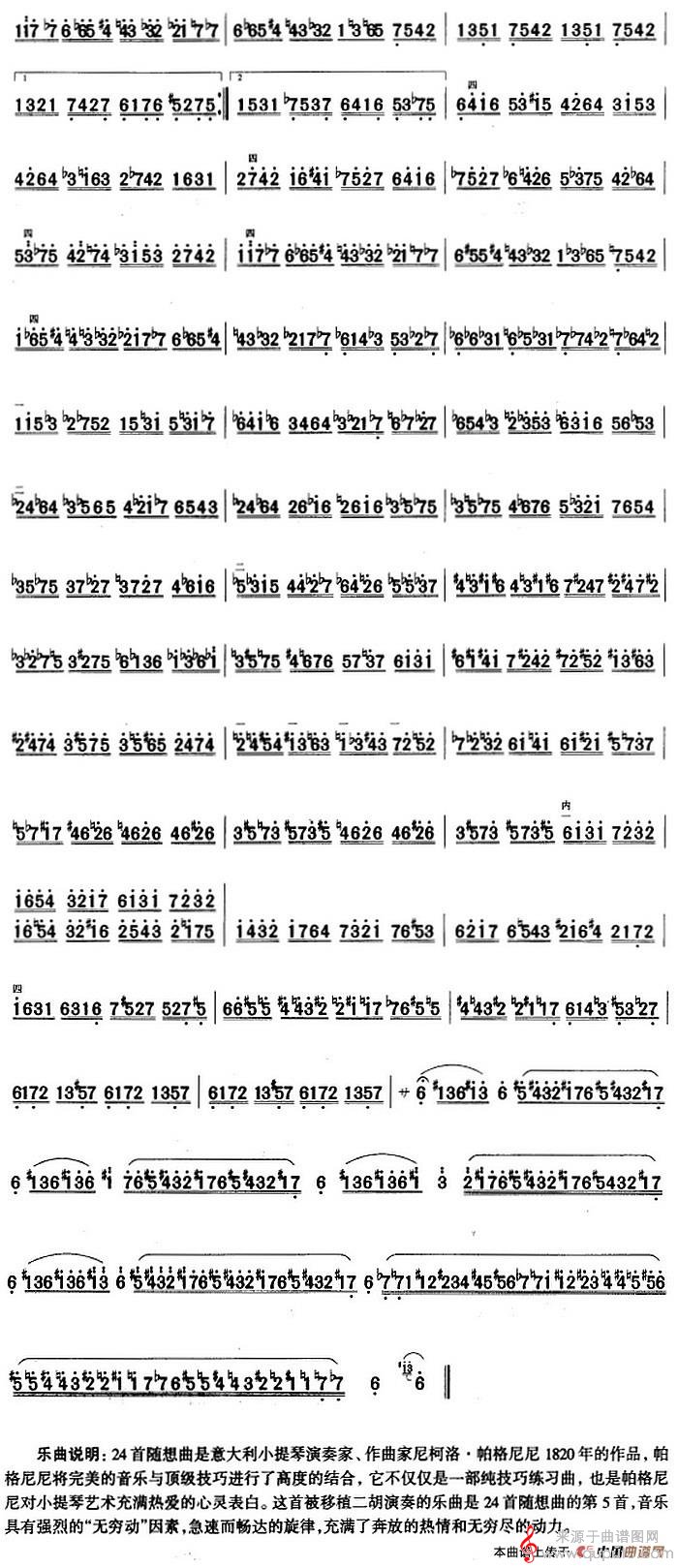 曲谱图网为您提供二胡独奏曲选:帕格尼尼随想曲 NO.5 简谱(帕格尼尼随想曲 NO.5二胡独奏简谱)找谱子,就上曲谱图网。