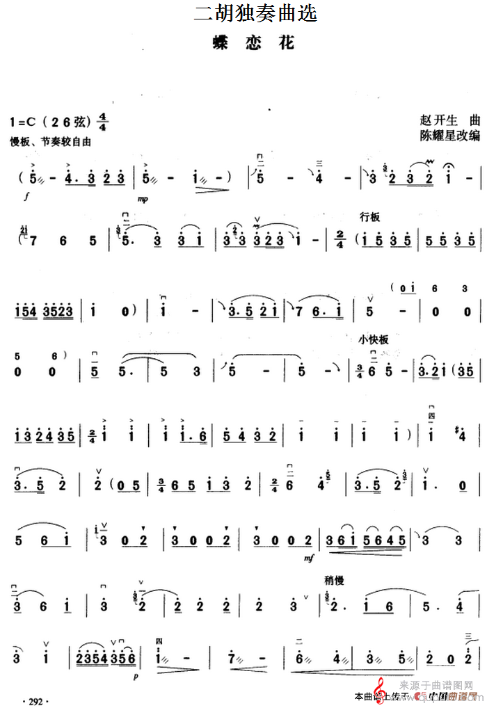 曲谱图网为您提供二胡独奏曲选:蝶恋花曲谱(蝶恋花 二胡演奏简谱)找谱子,就上曲谱图网。
