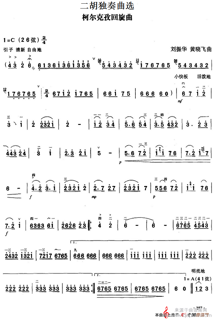 曲谱图网为您提供二胡独奏曲选:柯尔克孜回旋曲曲谱(柯尔克孜回旋曲二胡独奏简谱)找谱子,就上曲谱图网。