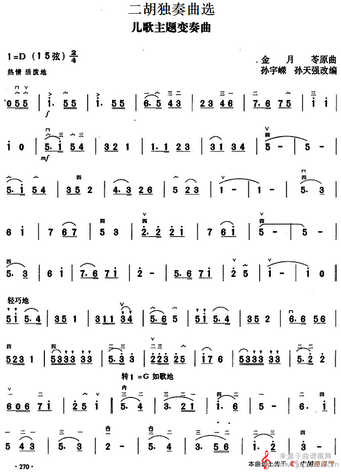二胡独奏曲选:儿歌主题变奏曲曲谱(儿歌主题变奏曲二胡独奏简谱)