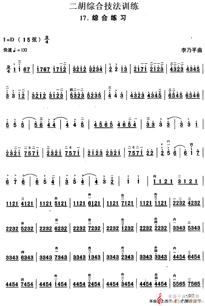 二胡综合技法训练:综合练习简谱(二胡综合技法训练:综合练习示范曲)
