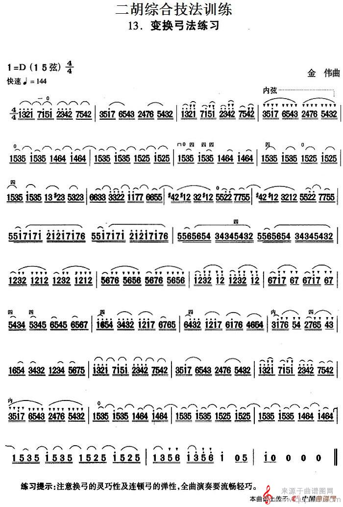 曲谱图网为您提供二胡综合技法训练:变换弓法练习简谱(二胡综合技法训练:变换弓法练习示范曲)找谱子,就上曲谱图网。