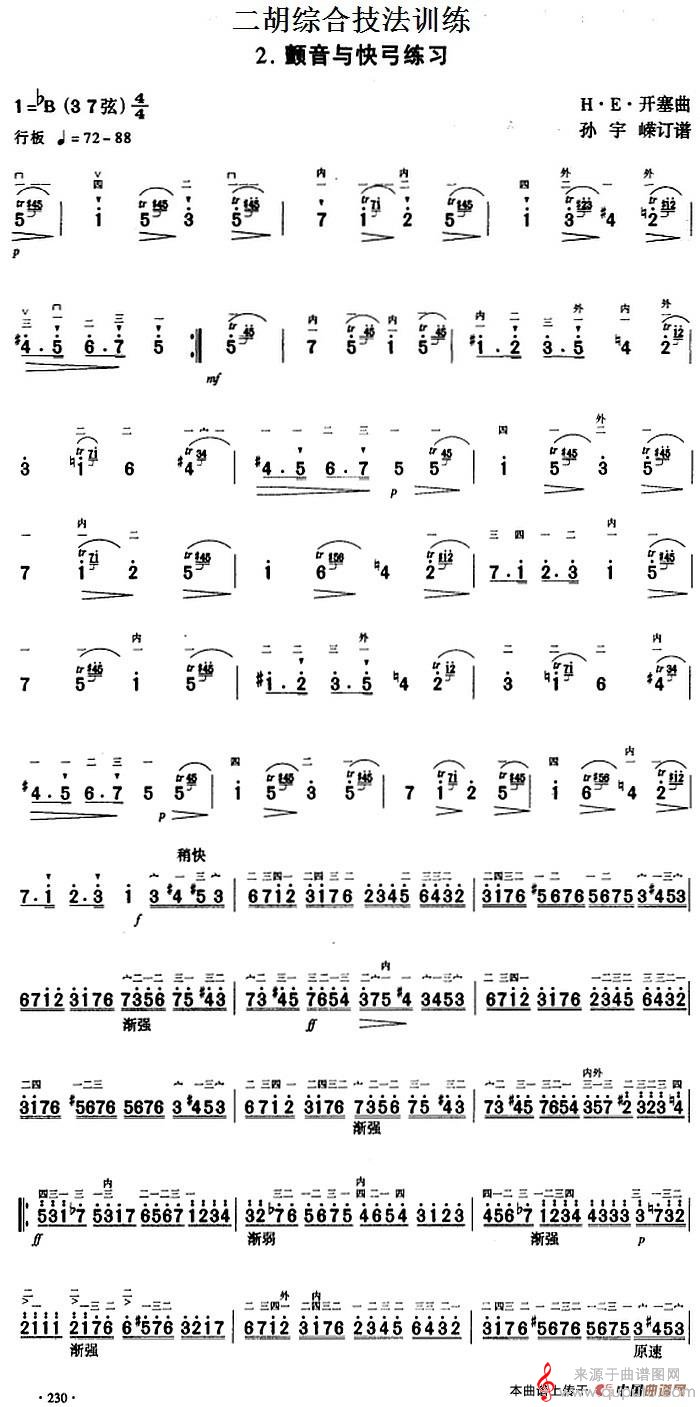 曲谱图网为您提供二胡综合技法训练:颤音与快弓练习简谱(二胡综合技法训练:颤音与快弓练习示范曲)找谱子,就上曲谱图网。