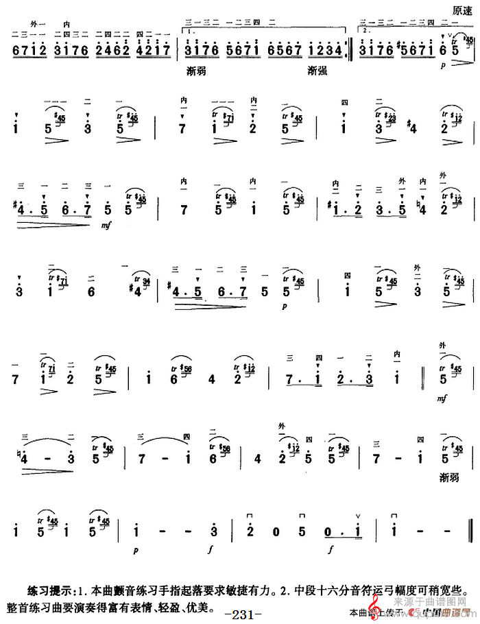 二胡综合技法训练:颤音与快弓练习简谱(二胡综合技法训练:颤音与快弓练习示范曲)