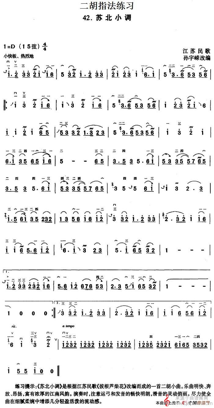 二胡指法练习:苏北小调简谱(二胡指法练习:苏北小调示范曲)