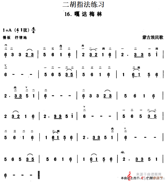 曲谱图网为您提供二胡指法练习:嘎达梅林简谱(二胡指法练习:嘎达梅林示范曲)找谱子,就上曲谱图网。