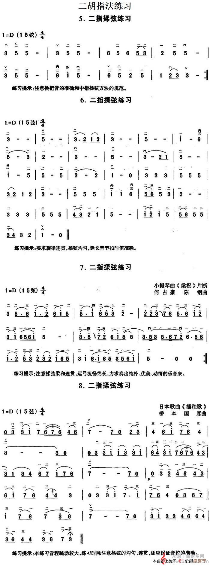 曲谱图网为您提供二胡指法练习:二指揉弦练习简谱(二胡指法练习:二指揉弦练习示范曲)找谱子,就上曲谱图网。