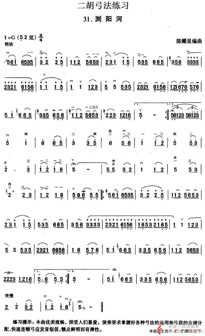 曲谱图网为您提供二胡弓法练习:浏阳河简谱(二胡弓法练习:浏阳河示范曲)找谱子,就上曲谱图网。