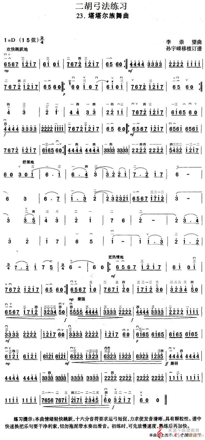 二胡弓法练习:塔塔尔族舞曲简谱(二胡弓法练习:塔塔尔族舞曲示范曲)