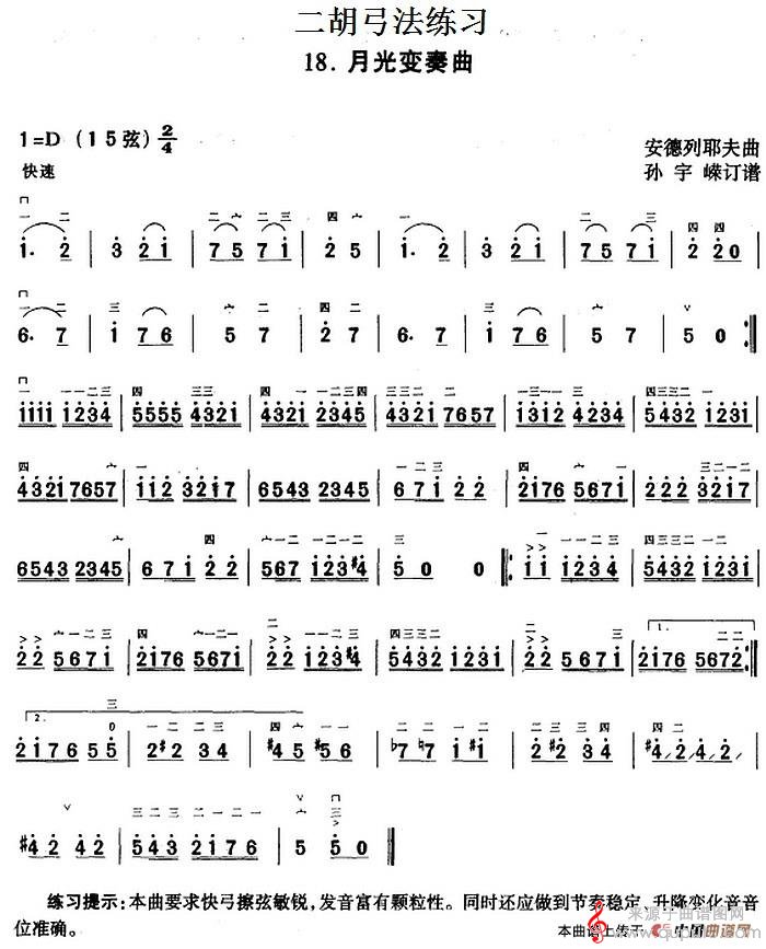 曲谱图网为您提供二胡弓法练习:月光变奏曲简谱(二胡弓法练习:月光变奏曲示范曲)找谱子,就上曲谱图网。