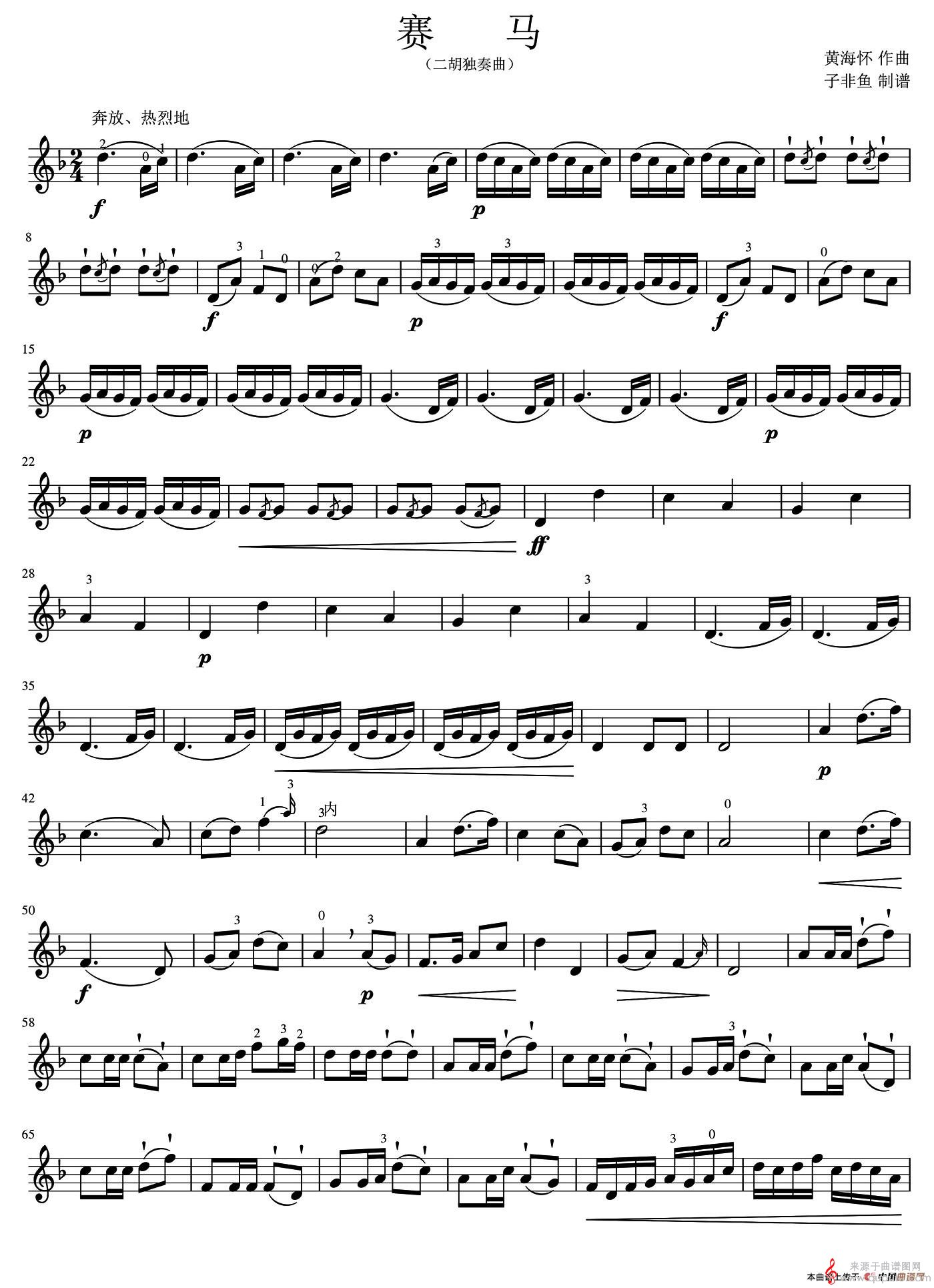 曲谱图网为您提供赛马(五线谱、子非鱼制谱版)简谱(赛马二胡独奏简谱)找谱子,就上曲谱图网。