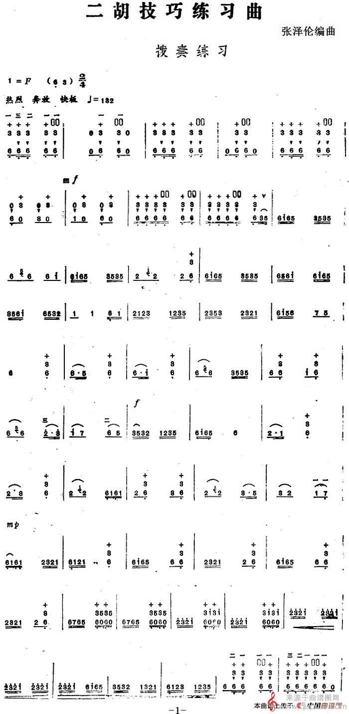 曲谱图网为您提供二胡技巧练习曲:拨奏练习简谱(二胡技巧练习曲:拨奏练习示范曲)找谱子,就上曲谱图网。