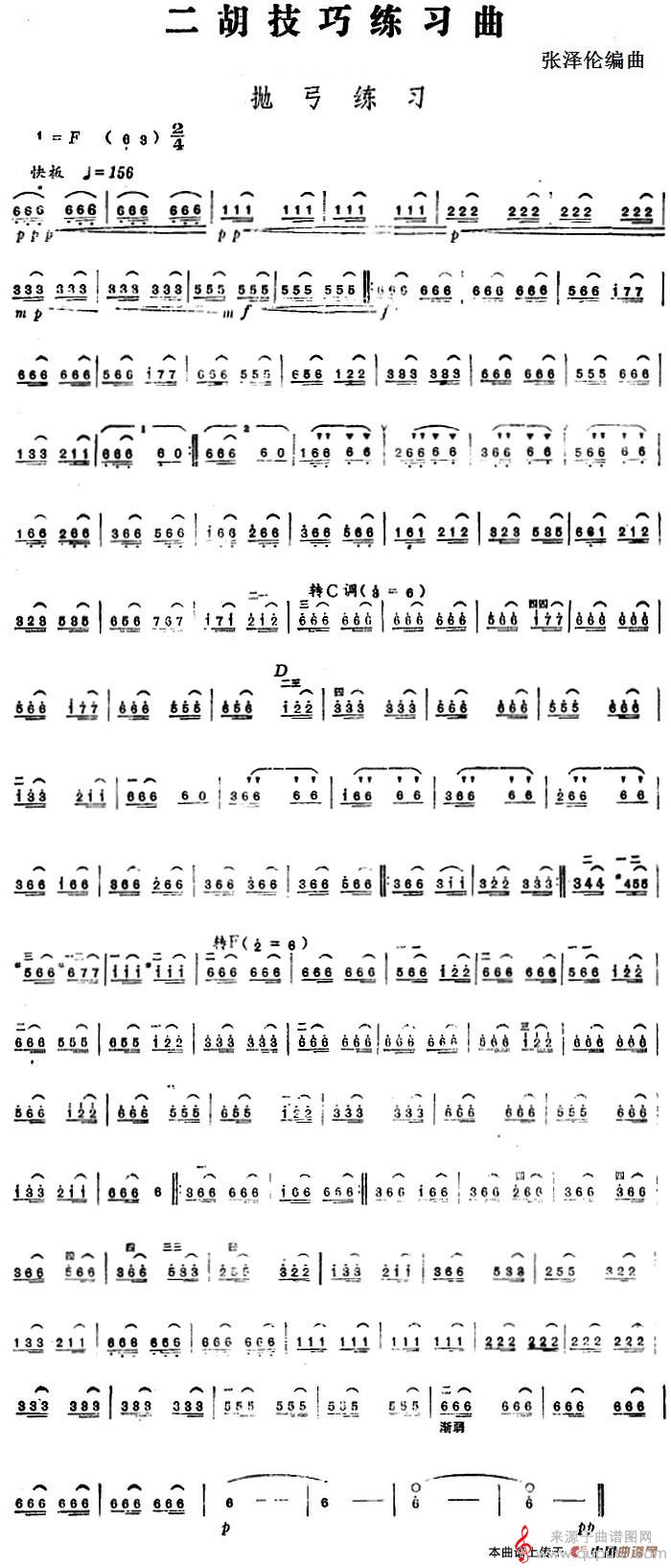曲谱图网为您提供二胡技巧练习曲:抛弓练习简谱(二胡技巧练习曲:抛弓练习示范曲)找谱子,就上曲谱图网。