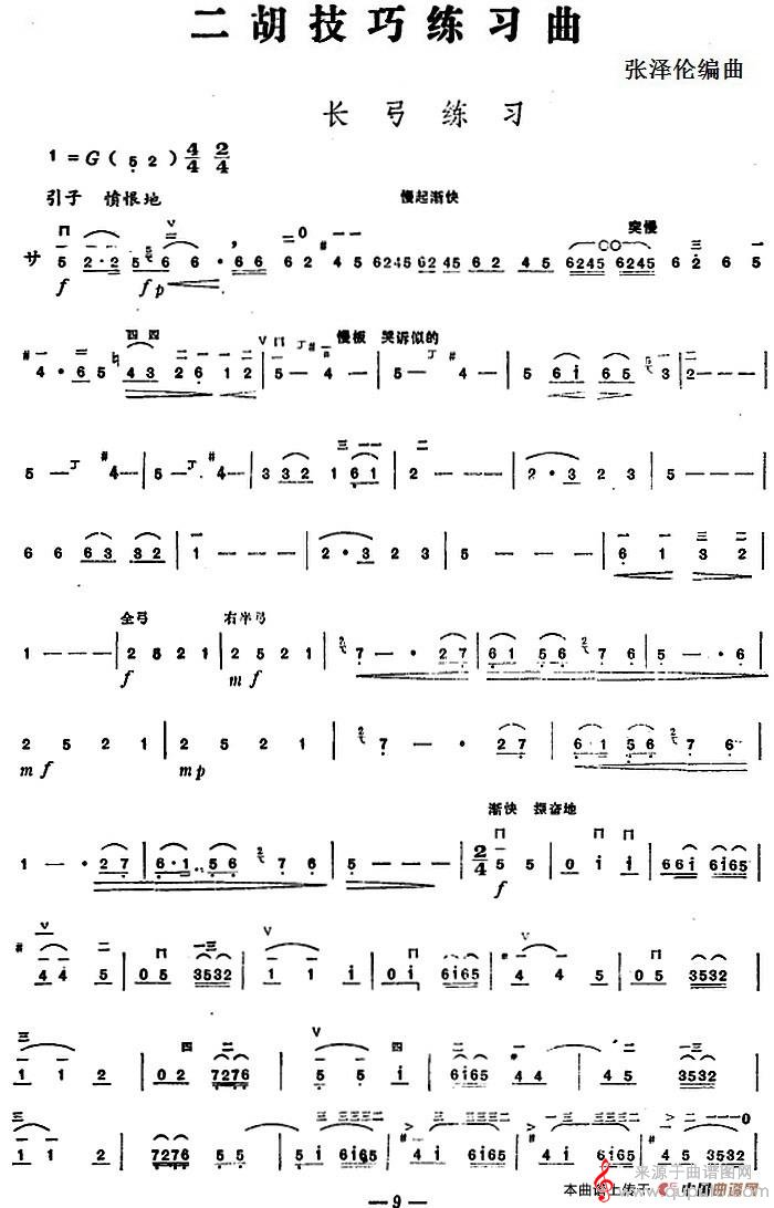当前位置:曲谱图网器乐曲谱胡琴二胡技巧练习曲:长弓练习简谱(二胡技巧练习曲:长弓练习示范曲)