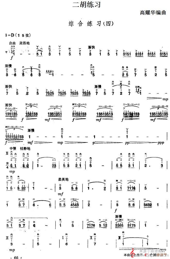 曲谱图网为您提供二胡练习:综合练习(四)简谱(二胡练习:综合练习(四)示范曲)找谱子,就上曲谱图网。