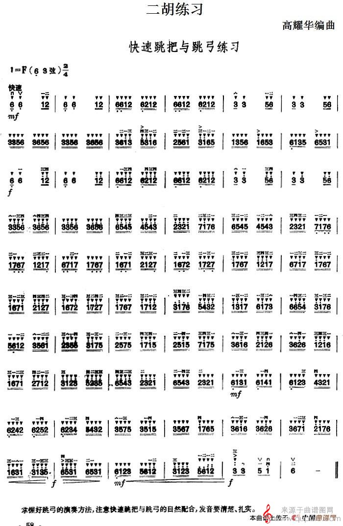 曲谱图网为您提供二胡练习:快速跳把与跳弓练习简谱(二胡练习:快速跳把与跳弓练习示范曲)找谱子,就上曲谱图网。