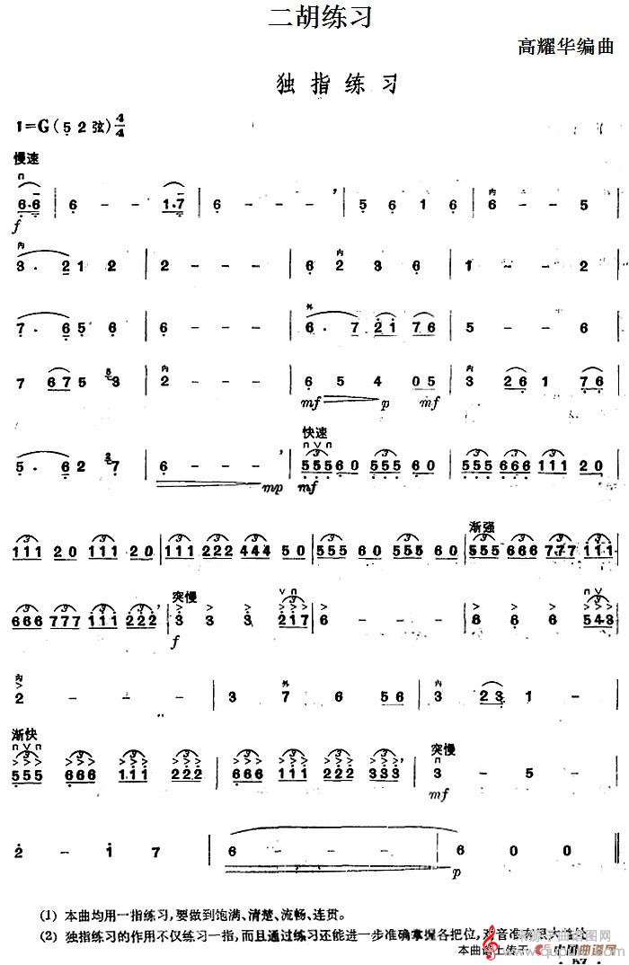二胡练习:独指练习简谱(二胡练习:独指练习示范曲)