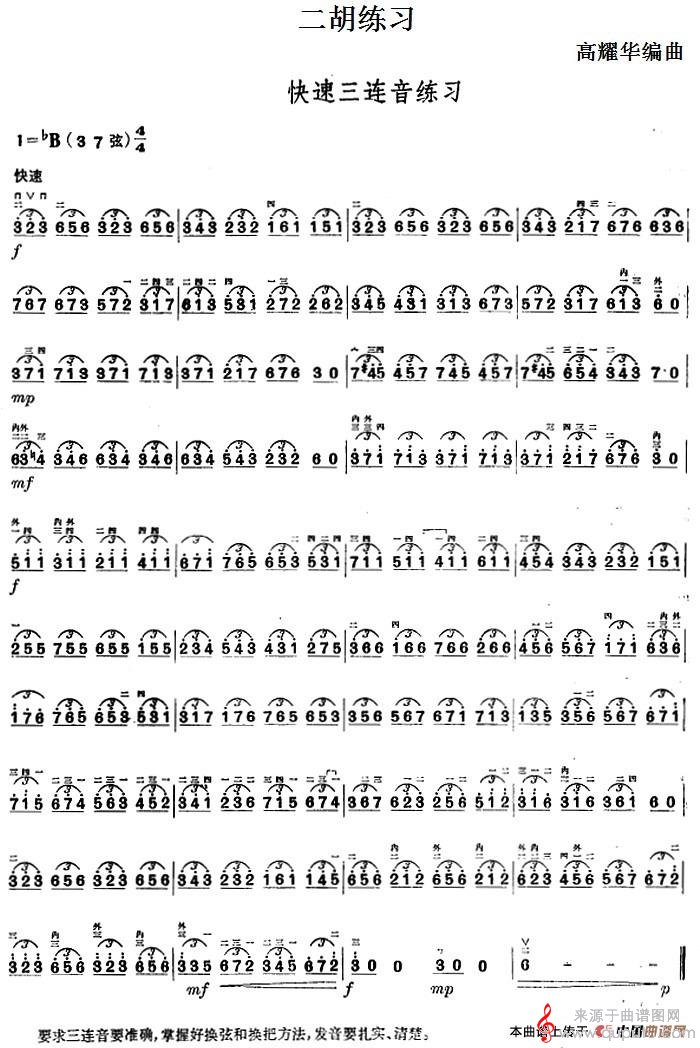 曲谱图网为您提供二胡练习:快速三连音练习简谱(二胡练习:快速三连音练习示范曲)找谱子,就上曲谱图网。