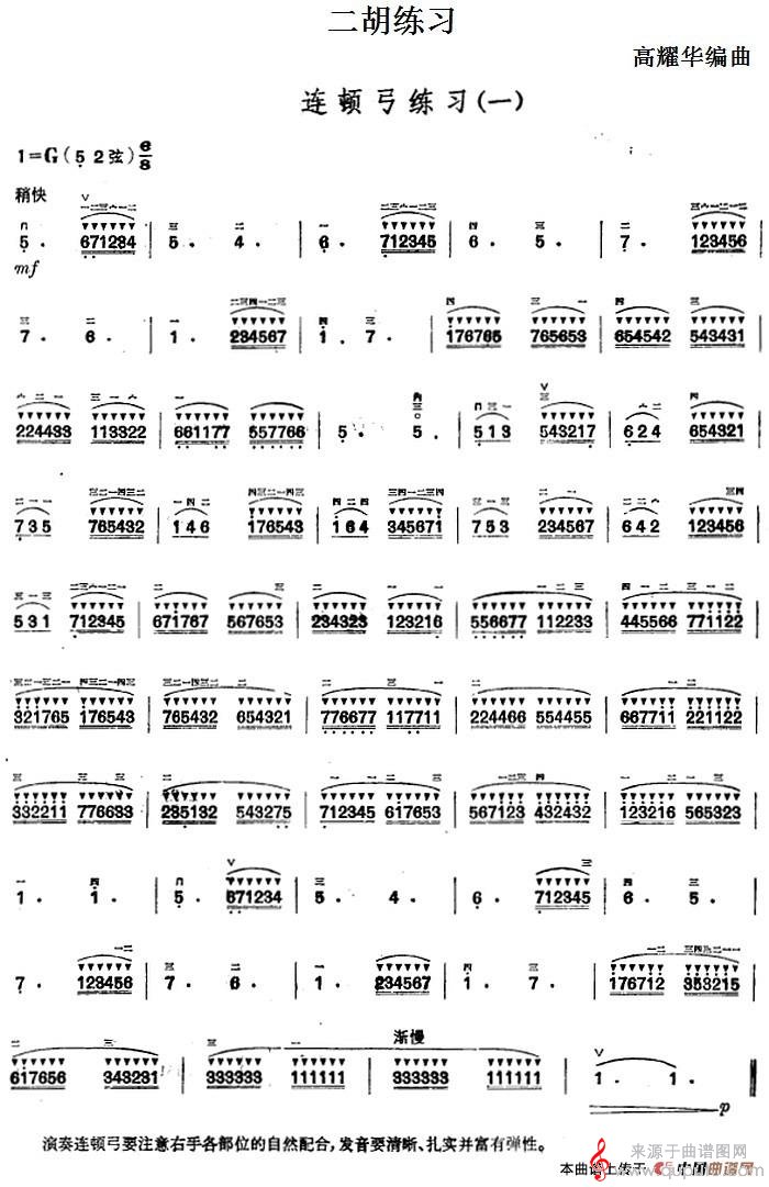 曲谱图网为您提供二胡练习:连顿弓练习(一)简谱(二胡练习:连顿弓练习(一)示范曲)找谱子,就上曲谱图网。